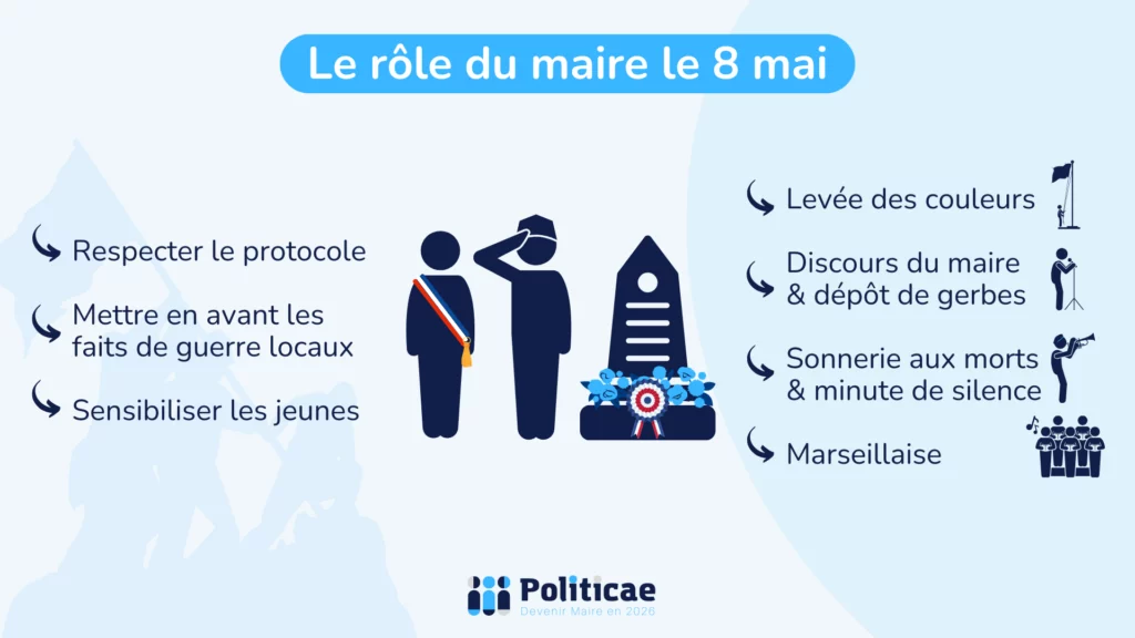 Le 8 mai est une opportunité pour le maire à plusieurs titres. D’abord, la cérémonie permet de rassembler les citoyens autour d’une mémoire et de valeurs collectives. Ensuite, elle est l’occasion d’associer la jeunesse à la commémoration, par exemple en faisant participer les élèves de l’école ou du collège. Les élus peuvent également leur apprendre la signification du cérémonial, du drapeau, et rappeler l’importance de solenniser cette date par une tenue adéquate. Enfin, pour les communes ayant une histoire particulière, ce jour férié permet d’attirer les visiteurs. Ainsi, la cérémonie du 8 mai contribue au rayonnement du territoire.