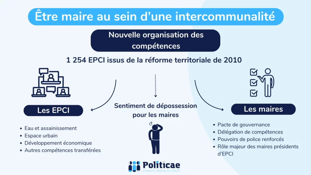 Depuis la réforme territoriale de 2010, appartenir à un établissement public de coopération intercommunale, dont vous trouverez ici la définition, est obligatoire. 1 254 EPCI à fiscalité propre regroupent ainsi les 35 000 communes de France, l’objectif étant de réduire l’émiettement communal. Ce regroupement a impliqué d’importants transferts de compétences des communes aux intercommunalités, qui contraignent les maires à s’adapter sans cesse au nouveau cadre législatif et réglementaire.