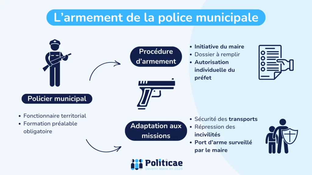 Dans les communes de plus de 5.000 habitants, la décision de doter sa ville d’une police municipale dépend uniquement de la décision du maire et du conseil. En revanche, dans les plus petites communes, elle est soumise à la validation du Ministère de l’Intérieur. Aujourd’hui, toutes les villes de plus de 10.000 habitants ont une police municipale, à l’exception notable de Brest. Cependant, l’armement d’un policier municipal n’est ni systématique, ni obligatoire.