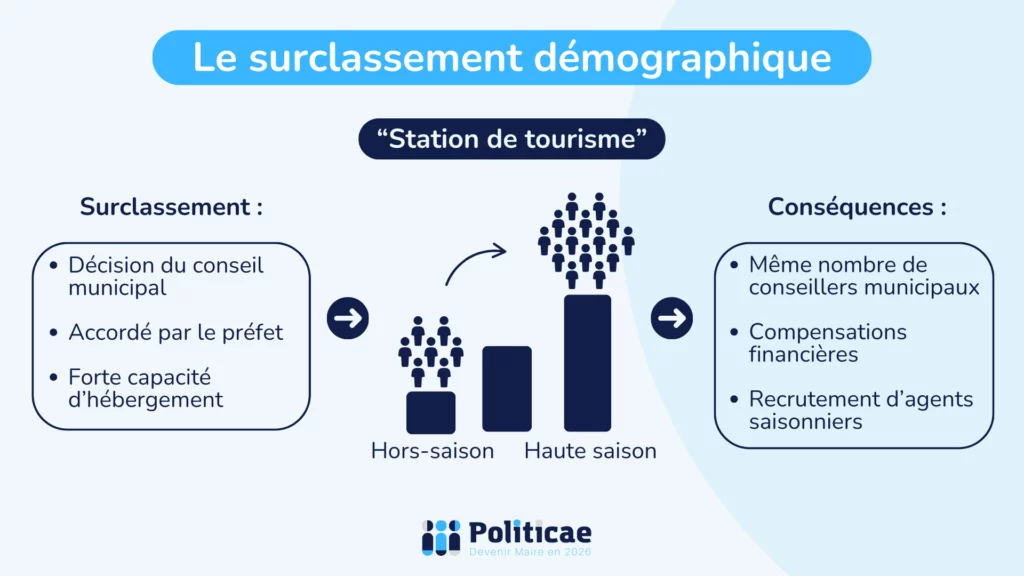 Le surclassement d’une commune consiste à placer la collectivité dans la tranche démographique supérieure, en raison d’un afflux de visiteurs de façon saisonnière