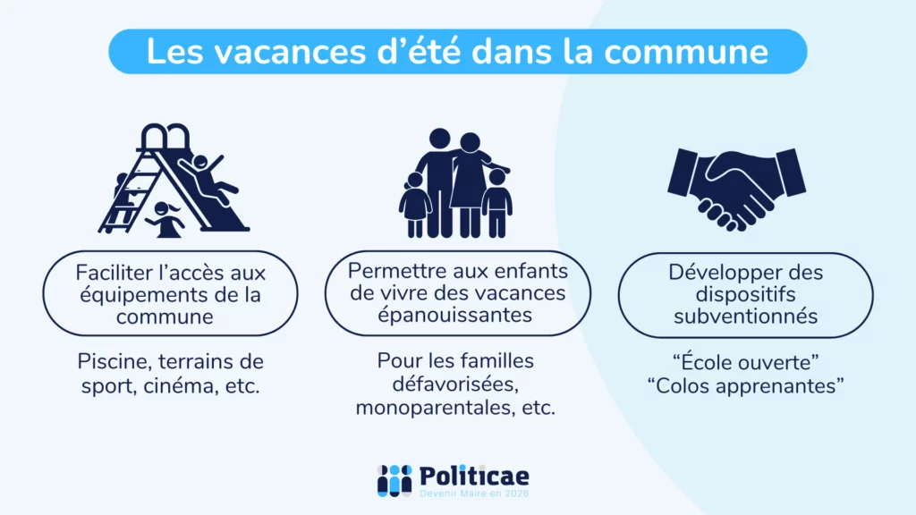 Dans chaque commune, permettre à tous d’accéder à une offre de loisirs durant les vacances scolaires est un aspect important de l’action municipale. Selon l’INSEE, un enfant sur 10 ne part pas en vacances. Par ailleurs, 67% des familles renoncent à partir l’été faute de moyens. Pour éviter le repli et la solitude de ces familles durant l’été, le maire peut proposer un éventail d’activités variées. Offrir des vacances d’été dans la commune aux familles qui restent devient alors l’opportunité de renforcer la sociabilité et de valoriser le territoire municipal.